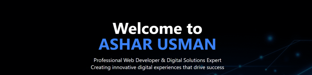 My Story Hi, I'm Ashar Usman, a passionate WordPress developer and programming specialist. My journey in web development started with curiosity and has evolved into a professional career focused on creating impactful digital experiences. With over a year of hands-on experience, I've worked with clients from around the world, including Fiverr projects, university collaborations, and business websites. I specialize in WordPress development, responsive design, and modern programming languages.